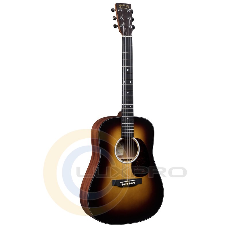 MARTIN DJr-10E Burst Dreadnought Junior - акустична гітара з п'езозвукознімач, верхня дека: цілісний сапеле, нижня дека: цілісний сапеле, обичайка: цілісний сапеле, гриф: деревина твердих порід c накладкою з річлайта, ширина грифа: нульовий лад 1 3 / 4 '', 12-й лад: 2 1/8 '', бридж: річлайт, ерхнЯЯ поріжок: білий коріан, нижній поріжок: Compensated White Tusq, розетка: Mother-of-Pearl Pattern with Multi-Stripe, інкрустація: перламутрові точки - маркери ладів, механіка: хром, кілки закритого типу, мензура: 24 ", лади: 20, система зв'язок деки: X Brace, Scalloped.