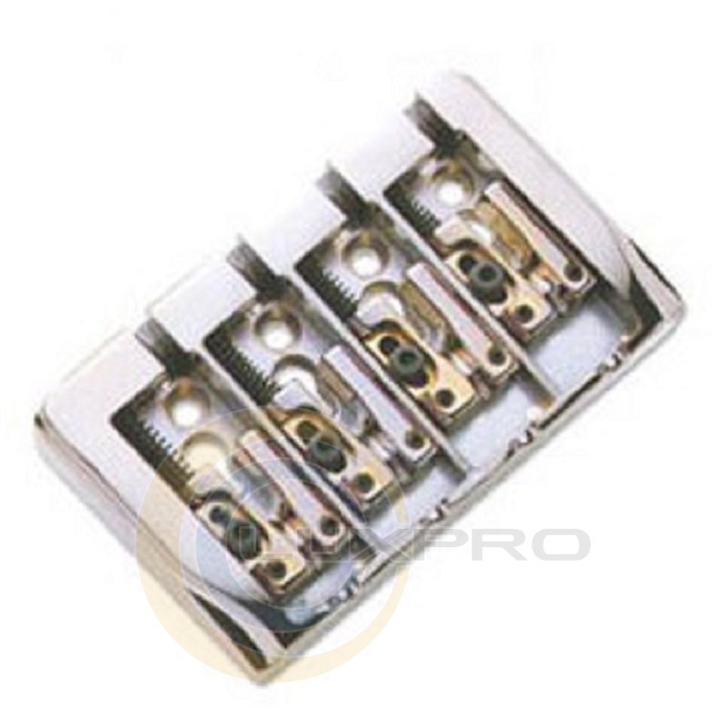BB404 CR - бридж для 4-струнної бас гітари, 4 сідла з цинку, відстань між струнами 19мм, 4 посадочних гвинта, колір: хром, виробництво: Корея.