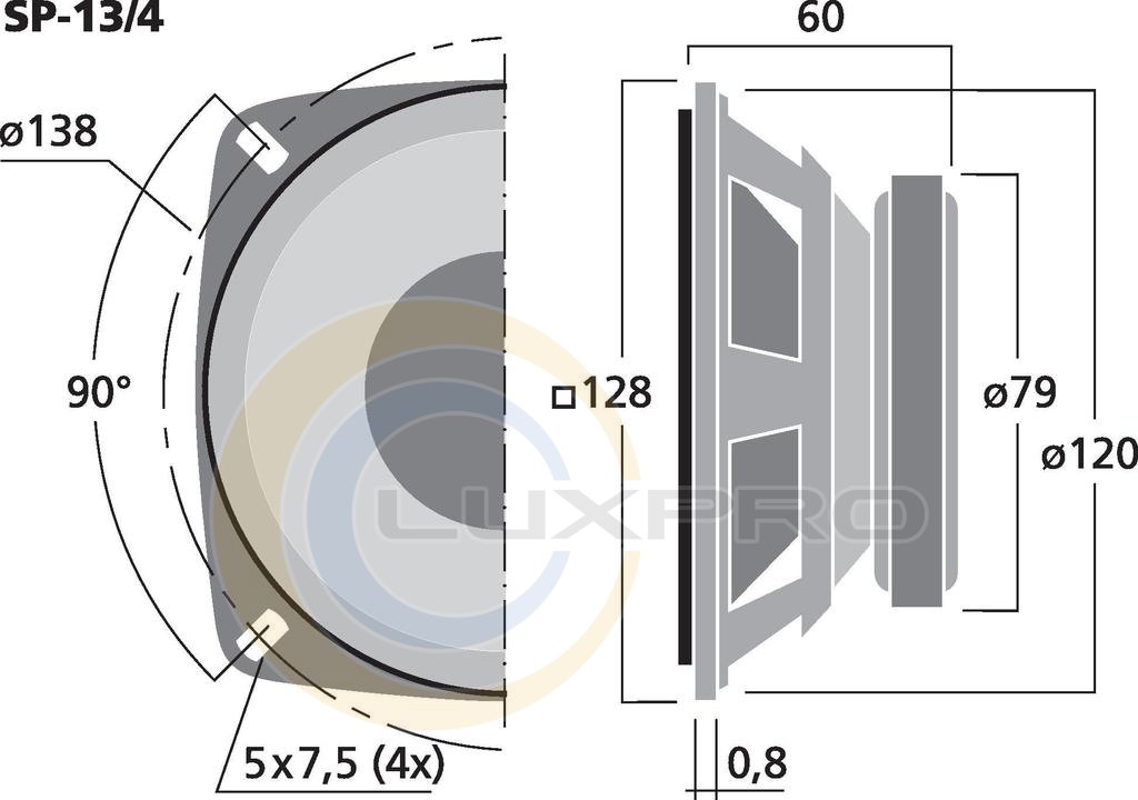 Високочастотний динамік Monacor SP-13/4 20 Вт, 4 Ом. Для загального застосування до діапазону PA. Широкосмугове випромінювання.