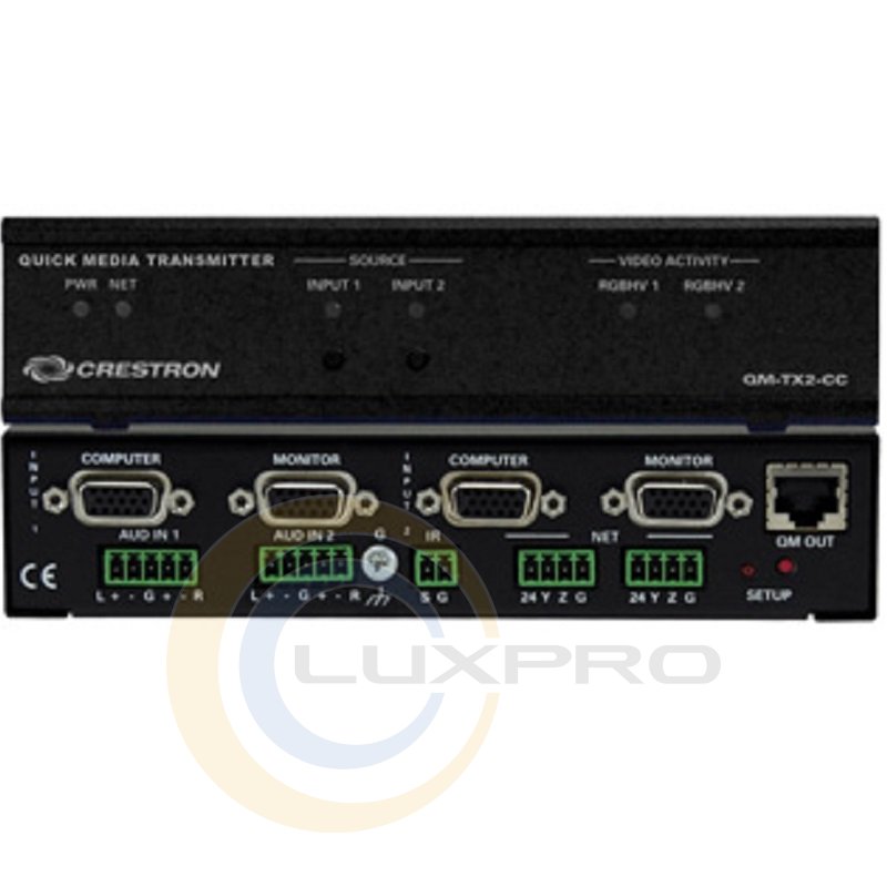 QM-TX2-CC - передавач, є логічним продовженням пристрої QM-TX, який став дуже популярним рішенням для передачі відео в мережі Crestron. Оригінальний передавач QM-TX є компактним, портативним рішенням для з'єднання одного джерела відео високої чіткості (наприклад, комп'ютер), а також одного джерела аудіо з пристроями Crestron, що працюють в мережі QuickMedia.