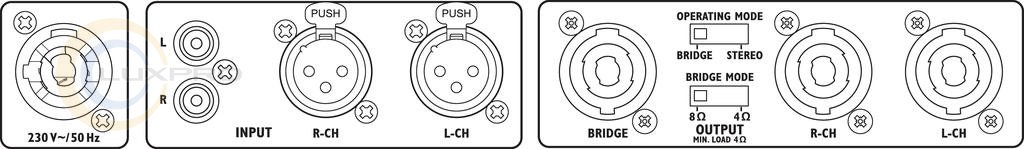 - роз'єми: 1 х НЕЙТРІК POWERCON, 1 х 3-полюсний XLR L / R, 1 х RCA L / R, 1 х НЕЙТРІК спікон L / R, 1 х НЕЙТРІК SPEAKON міст.