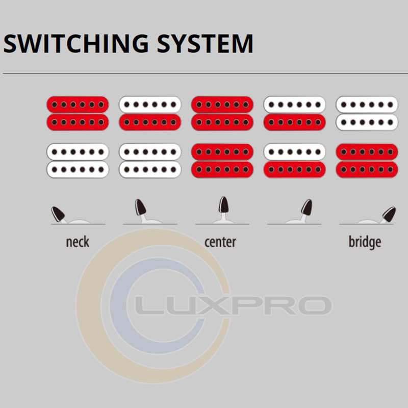 Два пасивних хамбакера відкритого типу не тільки дозволяють домогтися необхідної гнучкості в налаштуванні звучання гітари, але і прекрасно вписуються в стильний зовнішній вигляд інструменту. Електрогітара оснащена п'ятипозиційним перемикачем звукознімачів, а також двома регуляторами: гучності і тону. IBANEZ GRX20 представлена в синьому кольорі з чорним пікгард і гармонійно доповнює образ хромованою фурнітурою. Голова грифа - чорна, з яскравим білим логотипом «Ibanez».