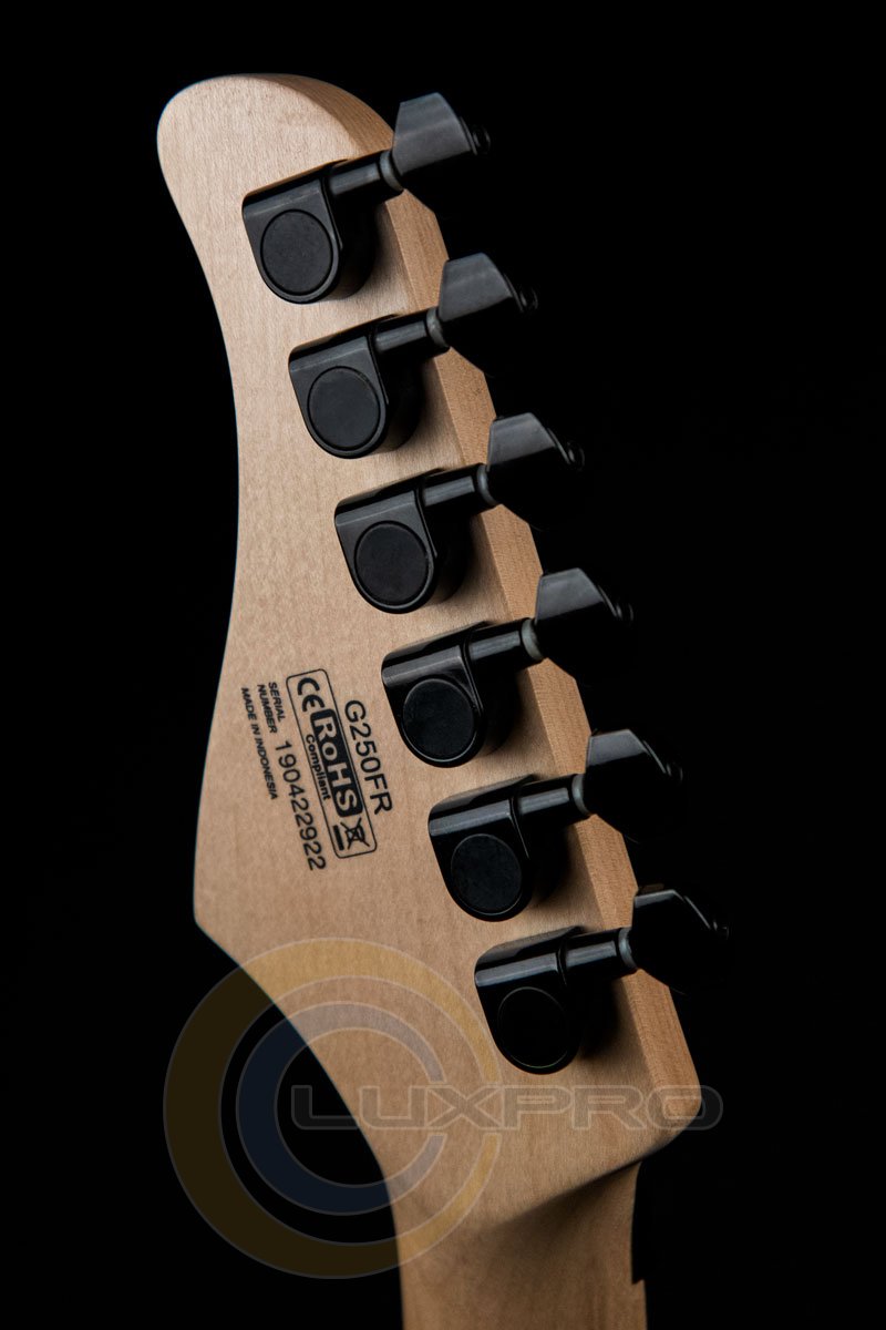 G250FR WHT - електрогітара, оснащена двома хамбакерами в форматі синглів рейкового типу, що видають енергійне і щільне звучання, яке ідеально підходить для гри з перевантаженням. Традиційний хамбакер Powersound встановлений в бріджевого позиції має більш традиційний "хамбакерний" тембр зі смачним Панч і багатим жирним тоном. Звичне і інтуїтивно зрозуміле управління звучанням G250FR дозволяє гітаристу зосередитися на своєму виконанні, а не на пошуку потрібного перемикача або ручки.