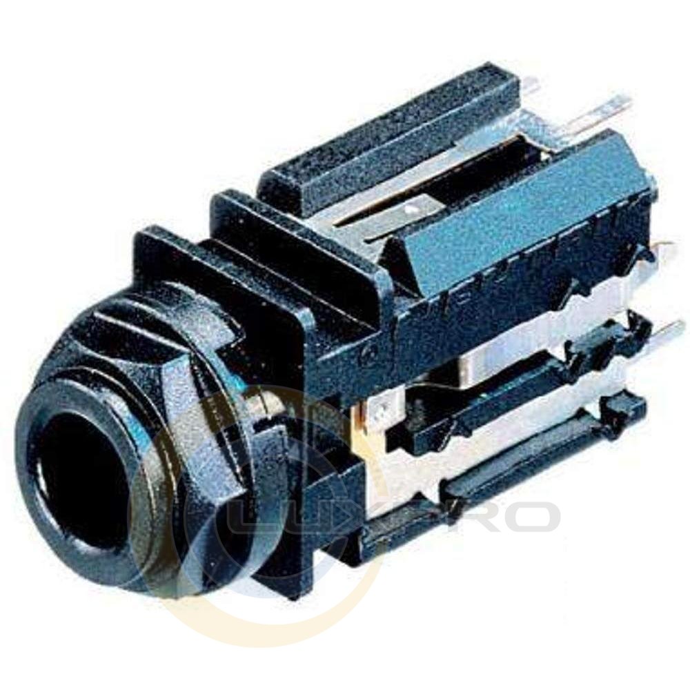 Вертикально монтується не перемикайтеся панельний роз'єм TS 6,3 мм Jack «мама» на плату з позолоченими контактами.Призначений для вертикального монтажу на друковані плати і панелі. Гніздо отримало позолочені контакти і унікальну функцію швидкої фіксації на корпусі. Розділені ізоляцією запірний механізм забезпечує електричну захист від замикань контактів, міцну фіксацію в гнізді в поєднанні з легким підключенням.Особливості: