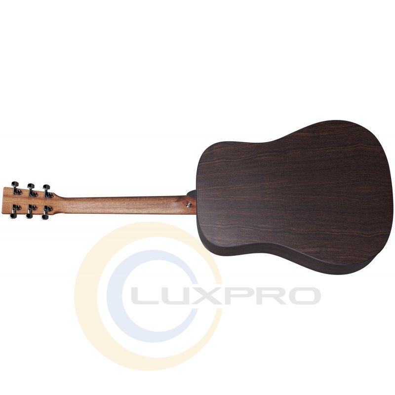 DX2E-03 - акустична гітара типу дредноут має верхню деку з цілісної ялини Sitka, нижню деку і обечайку з фігурного ламінату високого тиску з малюнком червоного дерева (HPL). Нова перламутрова вставка з малюнком на розетці і грифі надає багатство моделі D-X2E, роблячи її такою ж вражаючою, як і гра на ній. Завдяки профілю грифа Performing Artist, грифу і бриджу з добірної деревини твердих порід звучання цієї моделі було значно покращено. Інструмент оснащений електронікою Fishman® MX і струнами Martin's Authentic Acoustic Lifespan® 2.0. А новий м'який чохол із захистом головки грифа і бридж, міцної водовідштовхувальним поверхнею і пінним наповнювачем дозволяє надійно транспортувати цю модель.