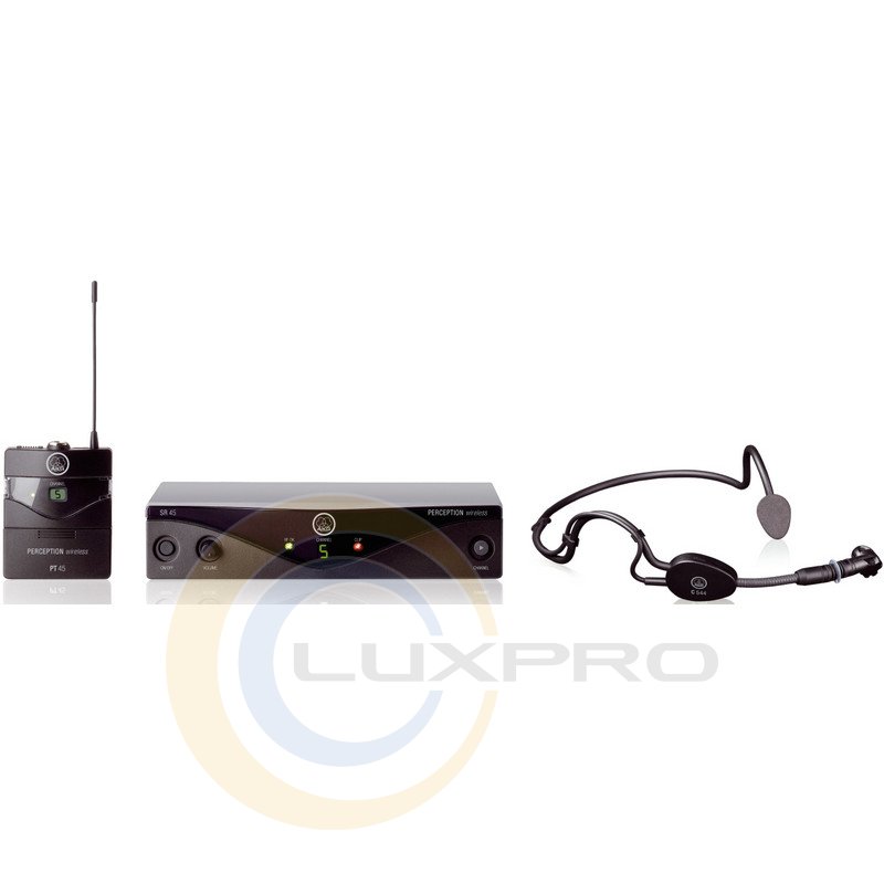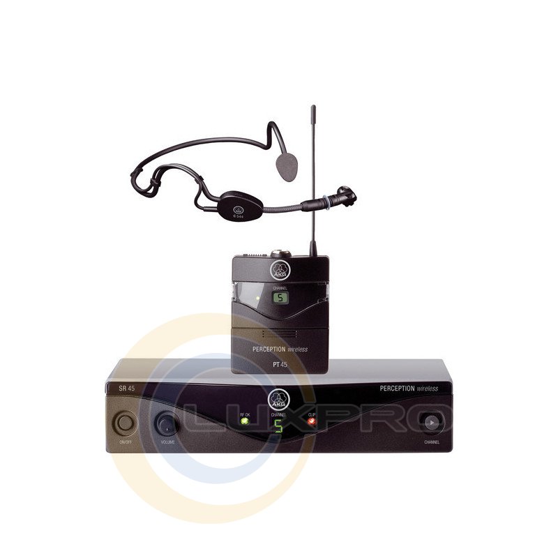Вокальна радіосистема AKG Perception 45 Sports Set BDU2 здатна підтримувати до 8-ми радіоканалів в одному діапазоні. Слід зазначити, що радіосистема досить невибаглива до живлення, так, на одній батарейці, «АА» типу вона здатна працювати аж до восьми (8) годин. Серед всіляких вокальних радіосистем теперішнього часу, модель Perception 45 Sports Set BDU2 користується безумовною популярністю, так як відповідає всім сучасним вимогам до передачі і звучанням вокалу або ведучого.Радіосистема AKG Perception 45 Sports Set BDU2 обладнана портативним передавачем. За допомогою передавача користувач може поставити мікрофон в 3 режиму: «Включено», «Виключено» та «Без Звуку». Також на передавачі знаходиться ручка регулювання чутливості мікрофона. Передавач може працювати, як і від батарейки, так і від акумулятора. До передавача можуть підійти будь-які мініатюрні мікрофони AKG, які забезпечені L-роз'ємом. Комплект пропонує відмінний вибір для динамічних виступів, проведення презентацій і подібних заходів. Дана система працює на радіочастотах 614,100 - 629,300 МГц.Відмітна особливість даної радіосистеми, це наголов'я з мікрофоном C544L. Він являє собою мініатюрний, легкий і зручний, вологостійкий головний мікрофон. Мікрофон з оголовьем добре підходить для фітнес-навчання, презентацій і використання в ситуаціях, коли користувач активно рухається і ніщо не повинно обмежувати його. Оголовье надаватися навколо задньої частини шиї, забезпечуючи комфорт і надійне кріплення. Високочутливий кардіоідний капсуль мікрофона гарантує оптимальну зворотний зв'язок і придушення шумів, а спеціальне покриття захищає мікрофон від попадання вологи, поту, макіяжу і т.п. Для з'єднання з поясним передавачем використовується вихідний кабель з трьохконтактні mini XLR з'єднанням.Живлення передавача здійснюється за допомогою однієї батарейки, АА типу, на якій мікрофон зможе пропрацювати аж до восьми годин. Блок приймача має кілька інтуїтивно зрозумілих налаштувань, це ручка контролю гучності і система вбудованого шумозаглушення. Решітка капсуля мікрофону виготовлена з особливого виду пружинної сталі, під якою встановлена система пасивного шумозаглушення. В результаті такої конструкції, передавач має захист від усіх зайвих і сторонніх шумів і перешкод, який часто виникають при роботі на сцені. Кардіоїдна спрямованість передавача забезпечує відмінну якість звучання голосу ще до моменту первинної обробки.Характеристики: