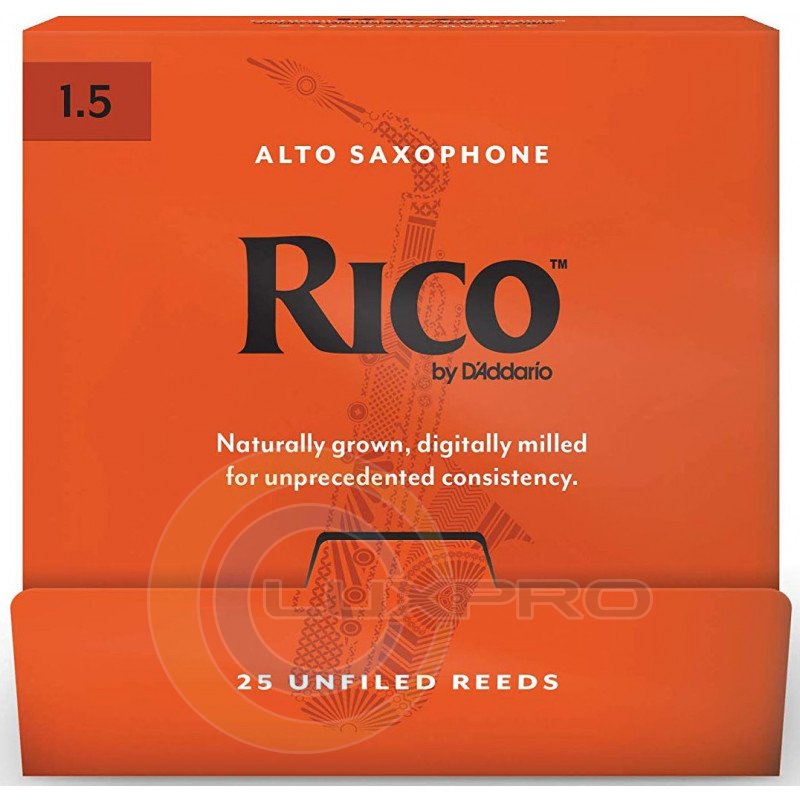 RICO RJA0115-B25 - тростини для альт саксофона, товщина 1,5, набір: 25 шт, традиційна форма зрізу, тонкий профіль для поліпшеної артикуляції і відгуку, прекрасно підходять як для класичної музики, так і для джазу, ідеальні для початківців музикантів, виробництво: США.