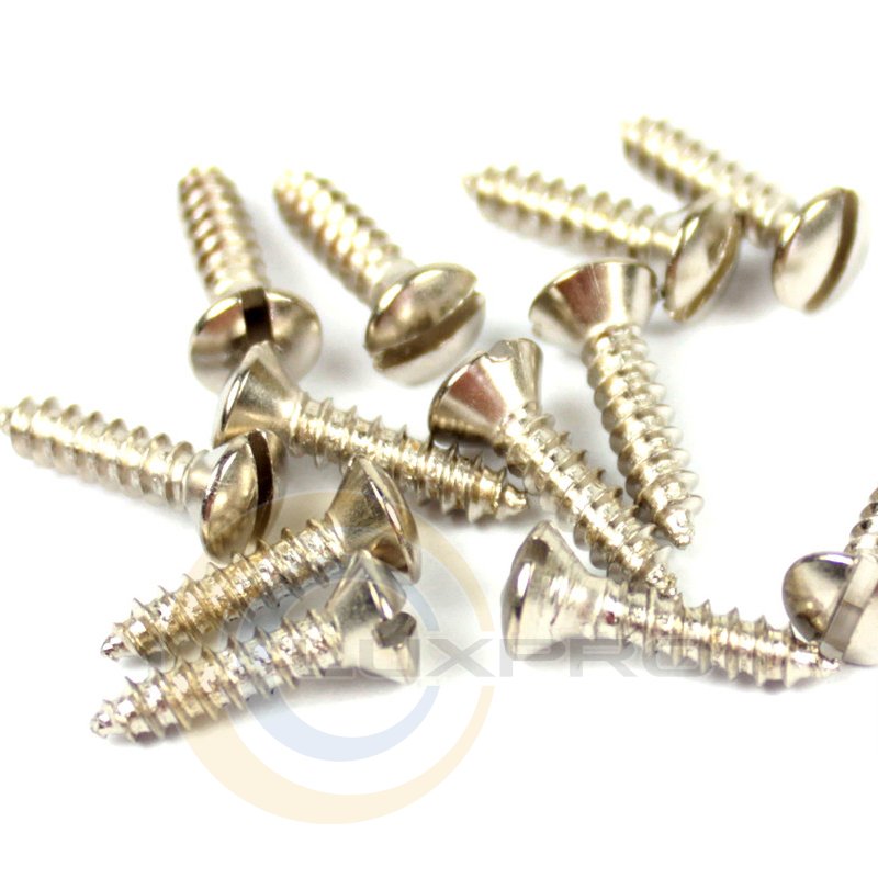 FENDER MOUNTING SCREWS FOR PICKGUARD/CONTROL PLATE '50S ERA TELE - це набір гвинтів для пікгарда/панелей Телекастер 50х, складається з 12 нікельованих гвинтів, що використовуються для кріплення пікгарда/панелей на більшості інструментів Fender.