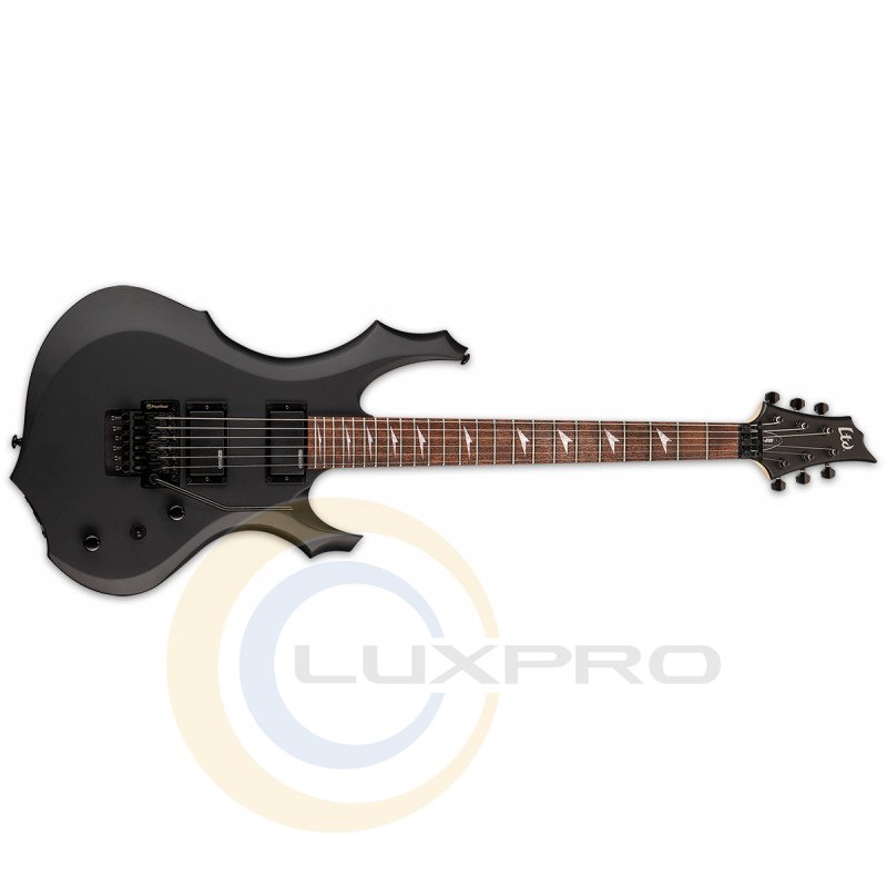 F200 BLKS - електрогітара, з болтовим кріпленням грифа, яка відмінно підходить для швидкісної гри і жорстких рифів. Він пропонує корпус з червоного дерева з кленовим грифом з мензурой 25,5 дюйма, тремоло FR від Floyd Rose і набором датчиків EH Designed LH-301 з пуш-пул регулятором тону для поділу котушок. Можна користуватися в чорною матовою обробці.