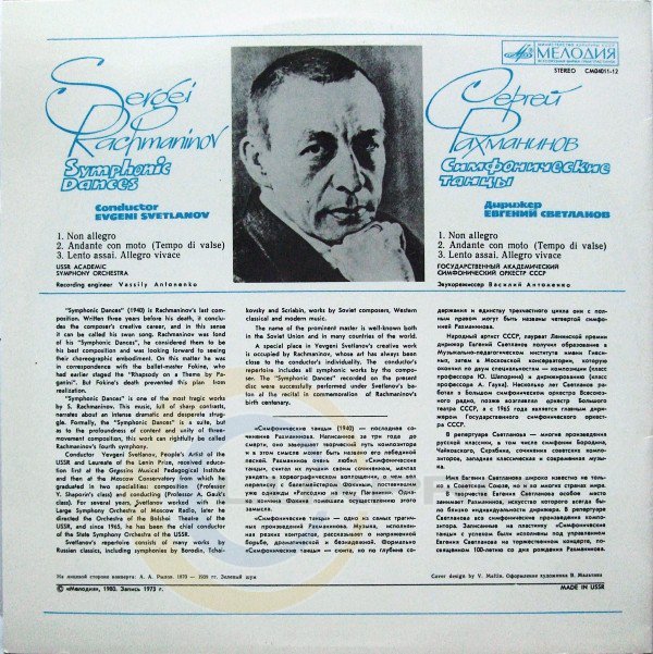 Вініловий диск LP Rachmaninoff - Symphonic Dances.Характеристики:
