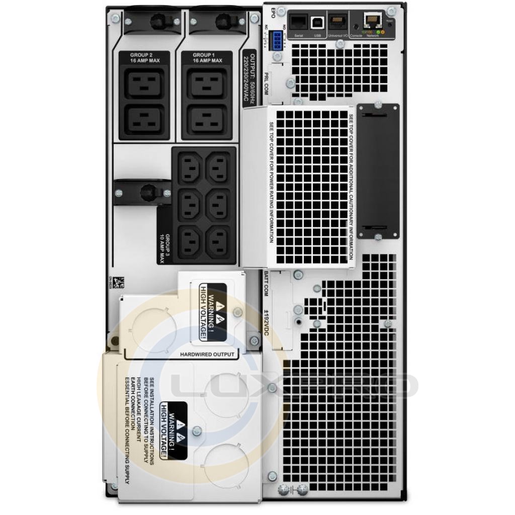 Джерело безперебійного живлення APC Smart-UPS SRT 10000VA (SRT10KXLI) має високі показники потужності і якості електроживлення при компактних розмірах. Він оснащений вбудованими платами мережевого управління, РК-екраном з можливістю змінювати параметри роботи джерела без використання спеціального програмного забезпечення, а також керованими групами розеток і вбудованим механізмом прогнозування рекомендованої дати заміни батарей (Predictive Battery Replacement).