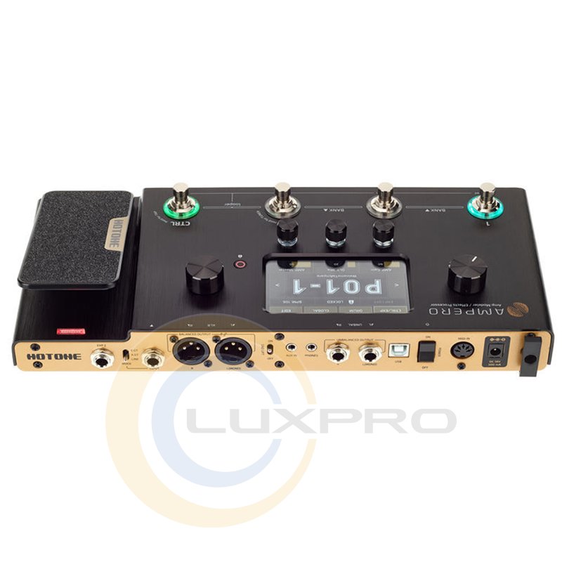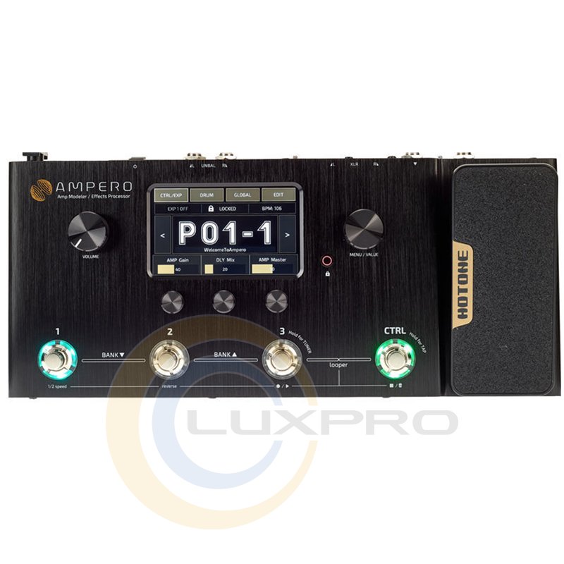HOTONE AUDIO AMPERO може обробляти до 9 модулів ефектів одночасно за допомогою гнучких FX1, FX2 і FX3/MOD для забезпечення найкращої автентичної обробки стереоефектів. Цей пристрій використовує ту ж бібліотеку модульованих/оригінальних ефектів, яка поповнюється, що і потужна педаль XTOMP, з ще більшою кількістю функцій: 242 ефекти; система CDCM HD & F.I.R.E., що включає в себе 64 підсилювачі, 60 кабінетів, 100 легендарних педалей, моделювання положення та типу мікрофона наступного покоління; Користуваницьке кастомне завантаження з підтримкою сторонніх імпульсних відгуків; 50 оригінальних ефектів Hotone (у тому числі високоякісні моделі драйв, динамічний, фільтр, мод, дилей, реверб і багато інших).