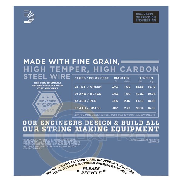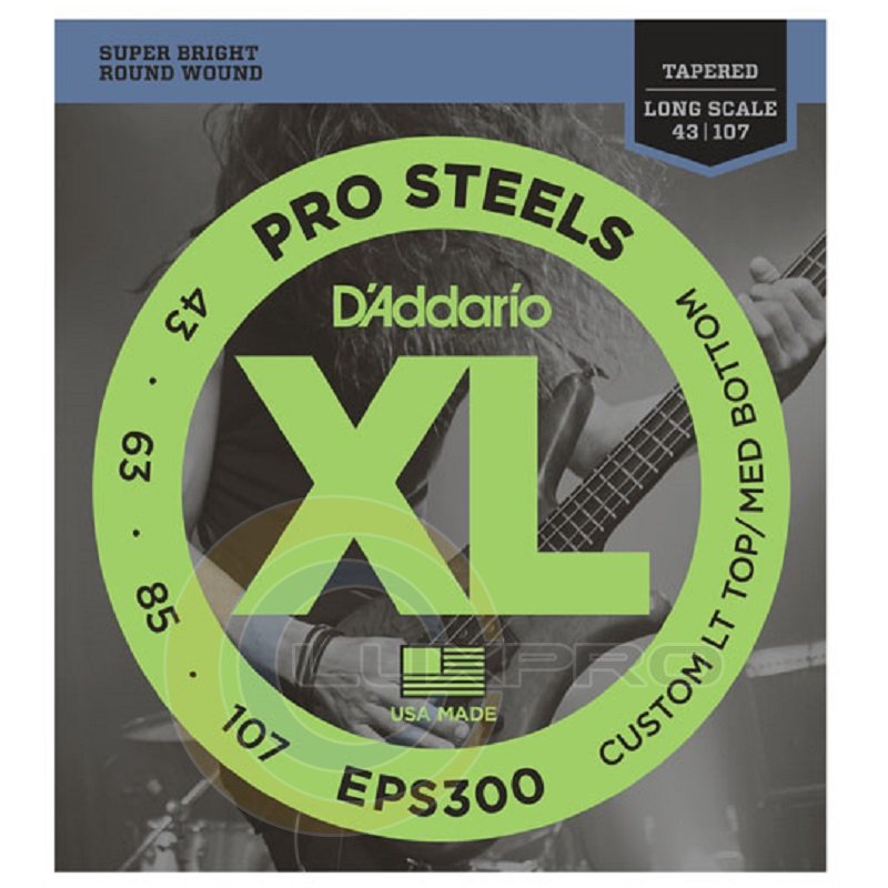 Струни для бас-гітари EPS300, особливий сталевий сплав забезпечує багатий гармоніками, яскравий верх в поєднанні глибоким і щільним низом. В результаті створюється фірмове "рояльне" звучання, яке так люблять басисти. Прекрасно підходять як для палацовий так і агресивної гри медіатором, ProSteels дадуть Вам додаткову гостроту і панч щоб виділитися в міксі з іншими інструментами.