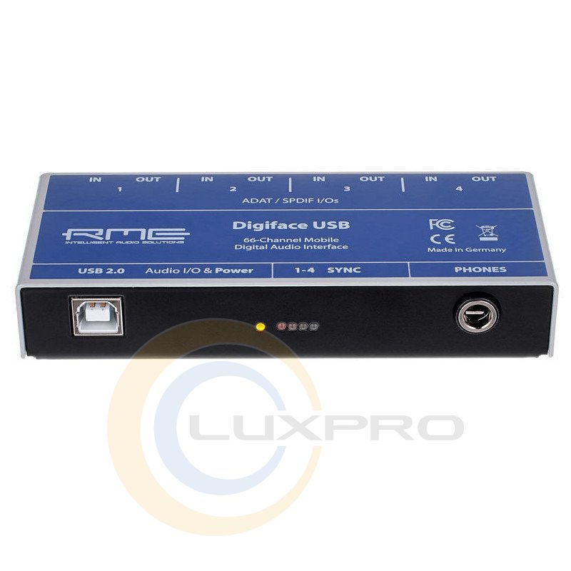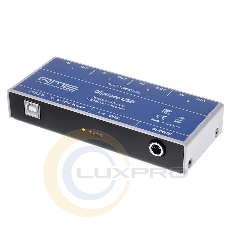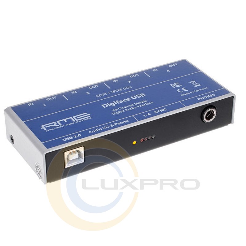 Digiface USB - аудіоінтерфейс, кожен окремий оптичний порт може використовуватися як ADAT (до восьми каналів), так і SPDIF (стерео), в той час як входи автоматично адаптуються до формату вхідного сигналу, тому виходи можуть індивідуально перемикатися між ADAT і SPDIF. При 192 кГц вісім каналів можуть використовуватися як входи і виходи через чотири SPDIF або ADAT. Завдяки невеликому розміру і вазі, а також джерела живлення через USB, Digiface USB є надзвичайно універсальним пристроєм.
