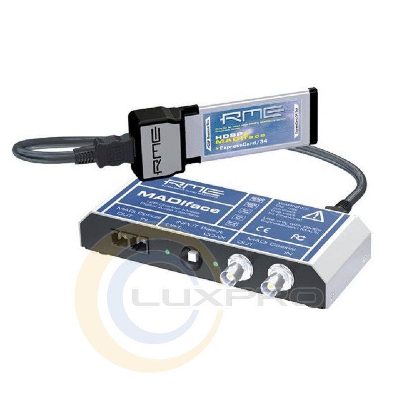 HDSPe MADIface - це звукова карта, дає можливість для одночасного запису / відтворення до 128 аудіо каналів аж до 192 кГц дискретизації, повний TotalMix.Для зручності користування харчування безпосередньо забезпечує ExpressCard тому ніяких зовнішніх джерел живлення не потрібно! MADIFace повністю сумісний для всіх пристроїв з інтерфейсом MADI. TotalMix може дистанційно управлятися по засобом MIDI. Включає програмне забезпечення: DIGICheck: спектральний аналізатор, вимірювач рівня сигналу на 2, 8 або 64 каналу, Vector Audio Scope, Global record, і інші аудіо аналітичні інструменти.