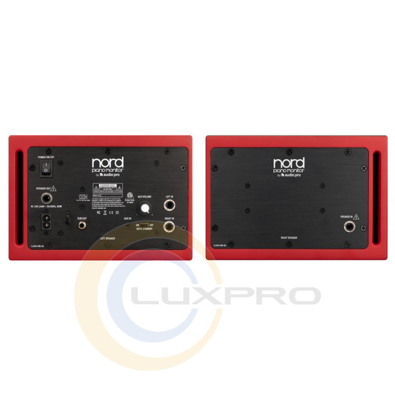 Фортепіанні монітори PIANO MONITOR оснащені роз'ємом RCA Sub-output і включають два стереофонічні аудіокабелем 1/4 ", моно аудіокабель, гумові ніжки і кабель живлення. Ця система моніторів сумісна з усіма продуктами Nord.