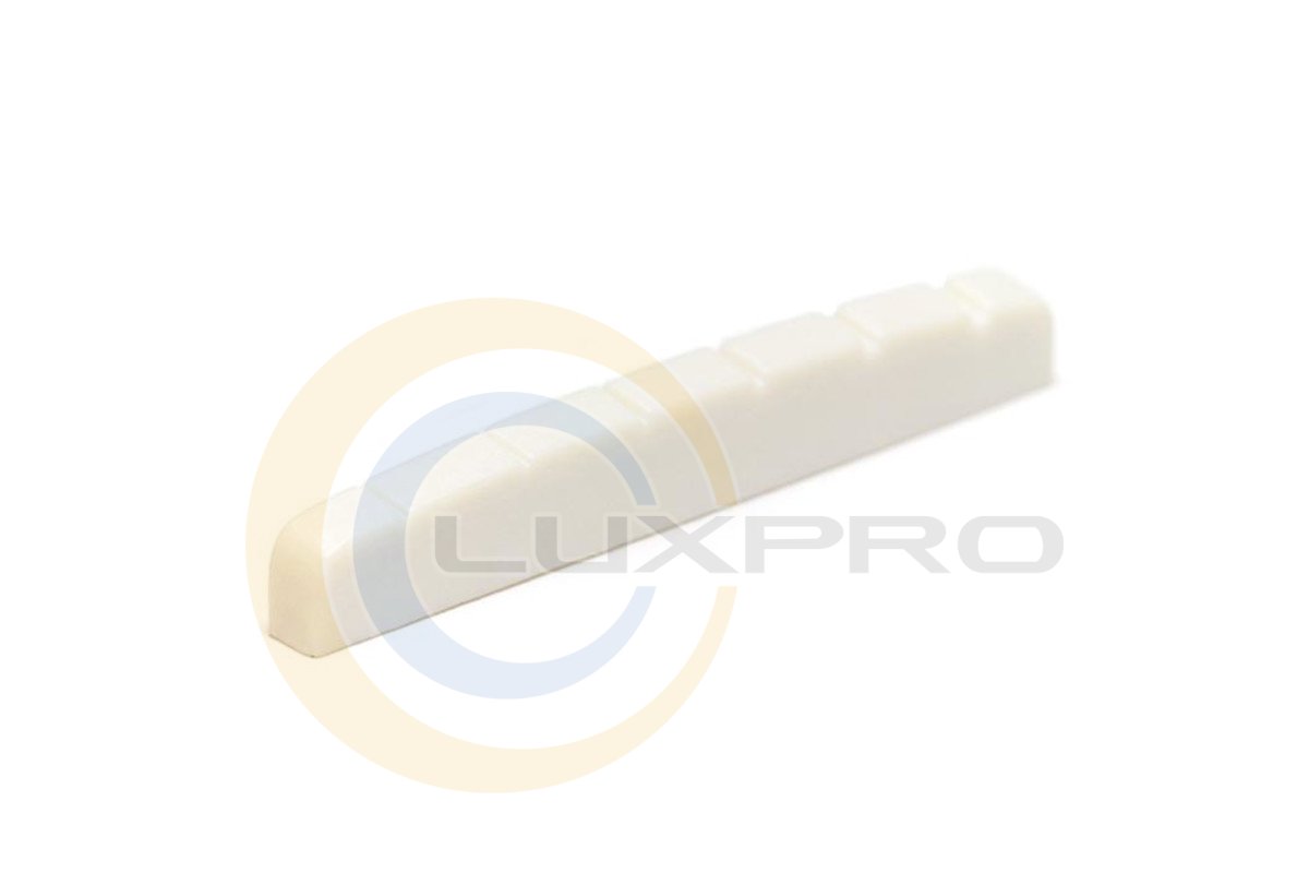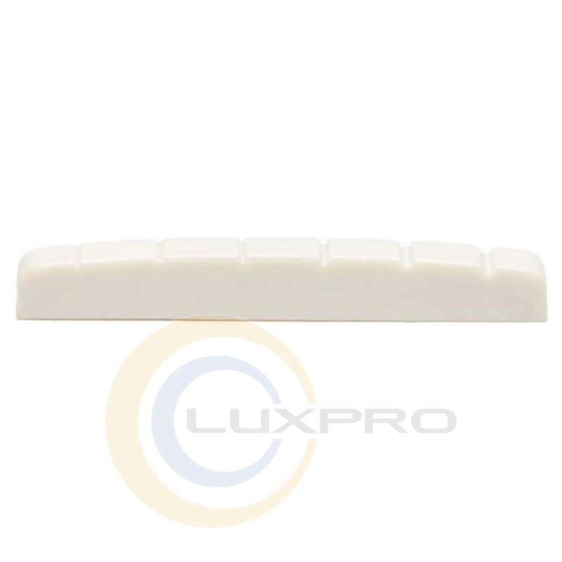 GRAPH TECH PQ-5010-00 TUSQ Nut Slotted Strat Style Flat Bottom - поріжки, зроблені з туска, надають насичений тон без неузгодженості, притаманної різним натуральним матеріалам з зернистою неоднорідною поверхнею, яка перешкоджає рівномірної передачі вібрації. У свою чергу, матеріал туск призначений для більш ефективної передачі потрібних частот від струни до корпусу гітари. Таким чином, поріжок з Туска підвищує стабільність налаштування і покращує гармонійне зміст звуку.