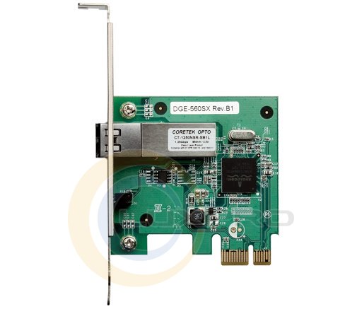 Високопродуктивний мережевий адаптер для шини PCI Express x4 D-Link DGE-560SX з інтерфейсом 1000Base-SX дозволить зменшити час підключення і підвищити надійність підключення до серверів мережі, завдяки підтримці PCI Express (PCIe) і оптичному з'єднанню. Виділена входить / виходить смуга пропускання PCIe гарантує продуктивність без використання шини для з'єднання Gigabit Ethernet в оптичних мережах.