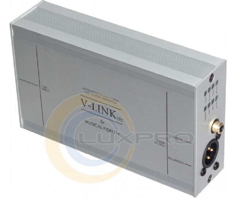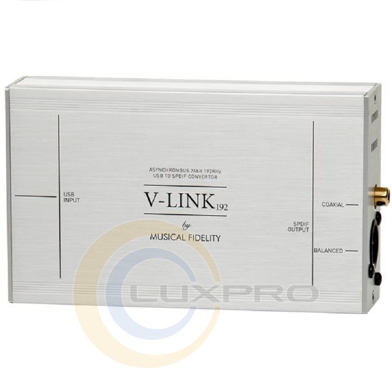 V-LINK192 - конвертер оснащений одним USB (тип B) входом і двома цифровими аудіовиходами (одним коаксіальним і одним повністю балансним), гальванічно ізольованими одна від одної. Пристрій поміщений в строгий, компактний повністю металевий корпус, на якому, крім роз'ємів, розташовані чотири світлодіодні індикатори, що інформують користувача про поточний режим роботи. Харчування конвертера здійснюється через USB-термінал.