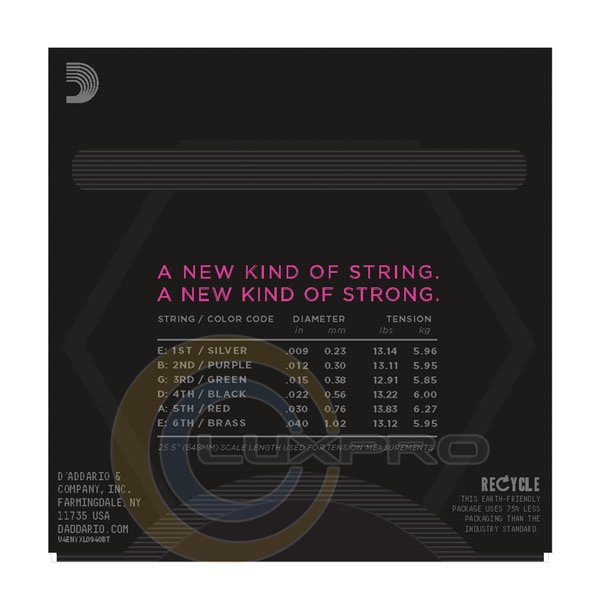 - NYXL0940BT має калібр типу "super light" для максимальної гнучкості, зручності про оптимального збалансованого натягу від стуни до струни: .009, .012, .015, .022w, .030w, .040w;