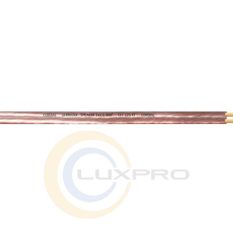 CLS 225 TT - кабель для акустичних сістем.Етот кабель заслуговує вашої уваги не тільки завдяки своїй привабливій ціні, але і універсальності у використанні і простоті закладки - ідеально підходить для використання при прихованому монтажі, під килимовими покриттями і в акустичних сістемах.Рекомендован для систем домашнього кінотеатру і інших HI- FI і Hi-END інсталляцій.В виробництві використовуються тільки високоякісні мідні жили, укладені в прозору ПВХ оболонку з червоною маркуванням для полярності.