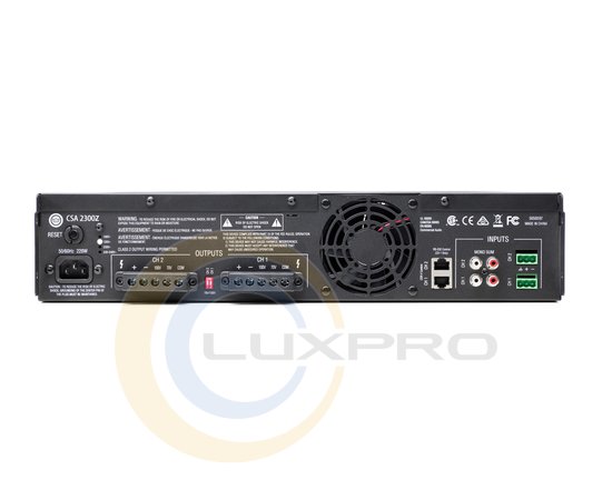 NCSA2300Z-34-EU - підсилювач потужності виготовлений в корпусі висотою в 2 юніта, володіє "індустріальним" дизайном і може функціонувати не тільки з низкоомной навантаженням, але також і на лінію 70 / 100В. Одна з основних "фішок" нових підсилювачів з CSA-серії полягає в використанні технології під назвою Crown DriveCore ™, а до числа інших специфічних особливостей можна віднести відповідність стандарту енергоефективності типу Energy Star, а також чудову можливість для підключення настінного контроллера управління гучністю моделі JBL CSR -V.