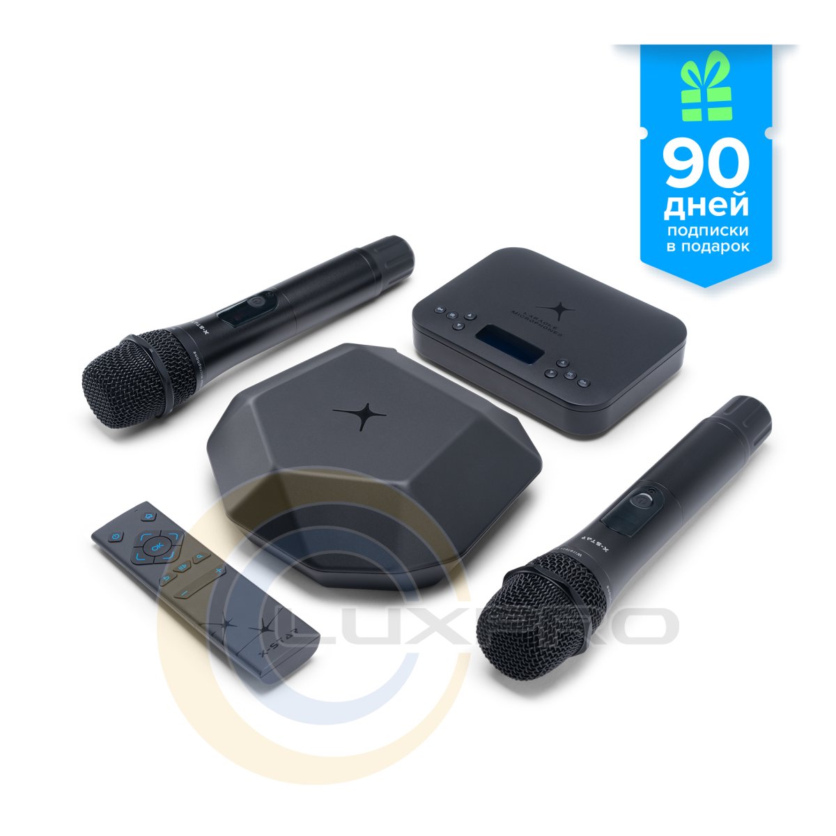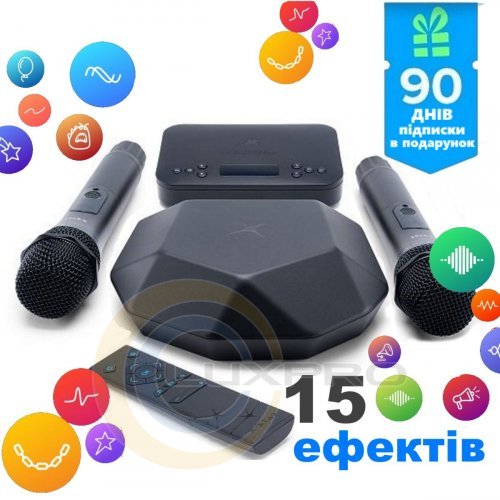 X-STAR KARAOKE BOX - це інноваційна домашня караоке-приставка. Десятки тисяч студійних фонограм на різних мовах, на будь-який музичний смак і настрій. Нові пісні та індивідуальні рекомендації щодня. В комплекті два бездротових мікрофони. Співайте самі, співайте з друзями, влаштовуйте караоке-баттли.