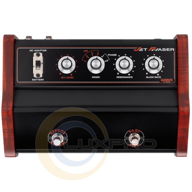 Jet Phaser - педаль ефектів, гіпер-автентичне відтворення цієї знаменитої педалі, від звукової схеми до зовнішнього вигляду корпусу, за винятком того, що це True bypass, більш доступний і надійний, ніж вантажні пристрої! Jet Phaser містить шість режимів, два з яких є такі як «PHASE», а чотири - «JET». Два режиму PHASE виробляють традиційні ефекти фазирования: перший має помірну глибину модуляції для більш тонких звуків, а другий - збільшену глибину для перебільшених результатів. Однак на цьому схожість зі звичайними фейзернимі педалями закінчується. Чотири режиму JET задіють ефект "струменя" (або фузз), і тоді все стає серйозно!