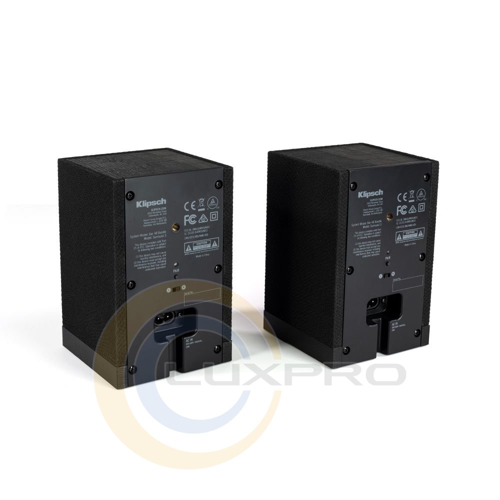 - комплектація: 2 бездротових колонки, 2 мережних кабелі 1,5 м, бездротової донгл для саундбара Klipsch, самоклеючі опори.