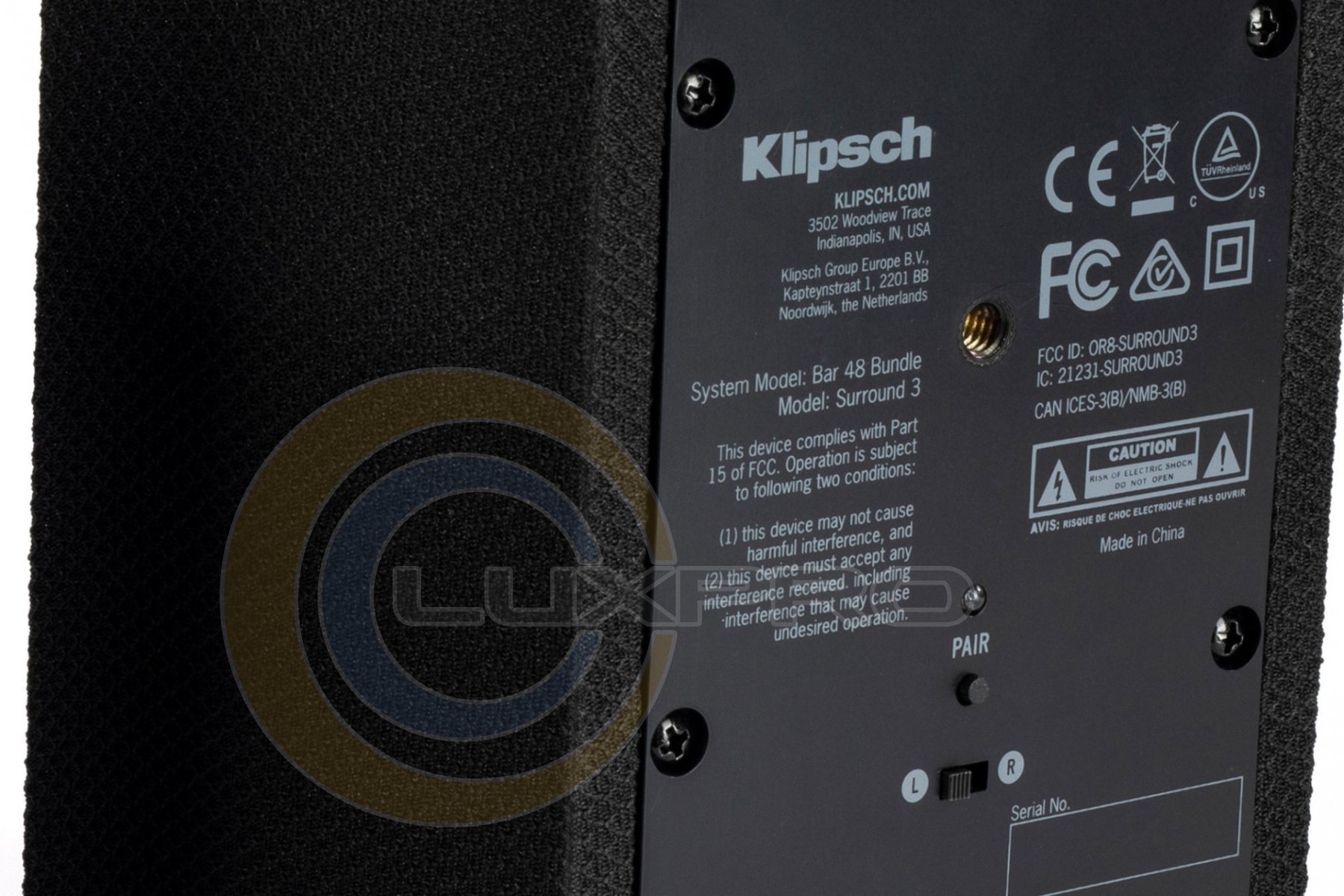 Процес стикування бездротової тиловий акустики з сумісним саундбаром простий. Для початку необхідно зняти бічну декоративну накладку з звукової панелі (на сьогодні можливість використання додаткової бездротової акустики передбачена в моделі Klipsch BAR 48) і встановити з спеціальне гніздо входить в комплект поставки Klipsch Surround 3 мініатюрний бездротовою донгл. Після цього потрібно включити саундбар і колонки, і провести їх сполучення відповідно до інструкції. Вся процедура займає пару хвилин і фактично виконується одним натисканням кнопки. Так як саундбар Klipsch оснащений декодерами Dolby Digital і DTS, вийшла система матиме класичну багатоканальну конфігурацію 5.1. Після цього враження від перегляду кінофільмів стануть практично такими ж, як і в компонентному домашньому кінотеатрі.