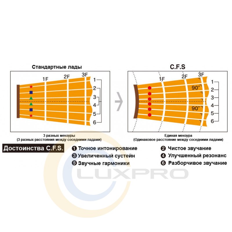 Незважаючи на те, що радіальна система ладів поки ще не так поширена як традиційна, в результаті проведення всеосяжних досліджень, ми виявили що C.F.S безумовно позитивно впливає на зручність гри і звучання струнних інструментів і цей ефект задовольнить навіть найвимогливіших музикантів. Ще в процесі розробки нашої революційної концепції, ми отримали безліч позитивних відгуків від професійних музикантів, що грають в різних стилях.