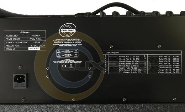 STINGER 80 DSP - гітарний комбопідсилювач, серія Stinger розроблена з прицілом на підвищену звукову віддачу, тому в цей підсилювач встановлені цілих два 10 "динаміка Carlsbro Powertone при 80 Ватт вихідної потужності. З таким зарядом Stingray 80DSP не згубиться поруч з ударною установкою, ні на репетиціях, ні на сцені. Зміцнена конструкція забезпечує додатковий захист при використанні комбо в якості концертного, а вхід для зовнішнього джерела і вихід на навушники роблять підсилювач незамінним для домашніх занять.
