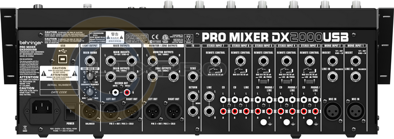 BEHRINGER PRO MIXER DX2000USB – професійний семіканальний DJ мікшер. Дана модель оснащена безконтактним оптичним 45 мм кроссфейдером, а також фейдерами 100 мм. Крім цього, цей пульт обладнали двома подвійними стереовходами CD/Line, трьома подвійними стереовходами CD/Phono, і навіть двома монофоническими/линейными входами з мікрофонними предусилітелями ULN. Дані підсилювачі у свою чергу мають фантомне живлення, регулятори вхідного посилення та кліп індикатори. Діджейський мікшер BEHRINGER PRO MIXER DX2000USB має інтерфейс USB, завдяки якому можна записувати та відтворювати музику, при цьому, не витрачаючи час на встановлення на комп'ютер спеціальних драйверів.