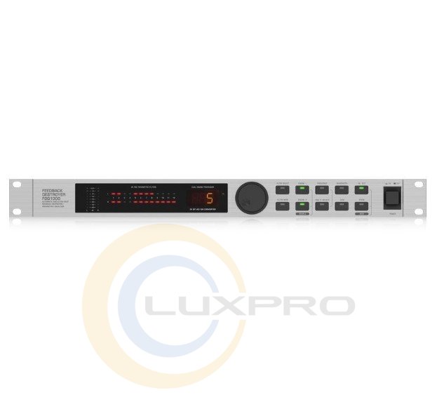 BEHRINGER FEEDBACK DESTROYER FBQ1000 – це пригнічувач зворотного зв'язку та параметричний еквалайзер в одному корпусі. Його основна функція – гасіння резонансних частот, які каскадно посилюються даною акустичною системою, а також виправлення провалів та інших особливостей амплітудно-частотної характеристики динаміків. BEHRINGER FBQ1000 – 2-х канальний пристрій, що підтримує велику кількість автоматичних режимів, завдяки чому його зручно використовувати для роботи з живим звуком, коли немає часу возитися з налаштуваннями мікшерними сигналу для кожного каналу окремо.