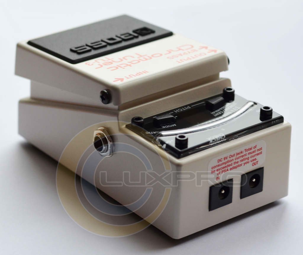 - тюнер може служити в якості розподільника блоку живлення на 7 педалей ефектів BOSS;