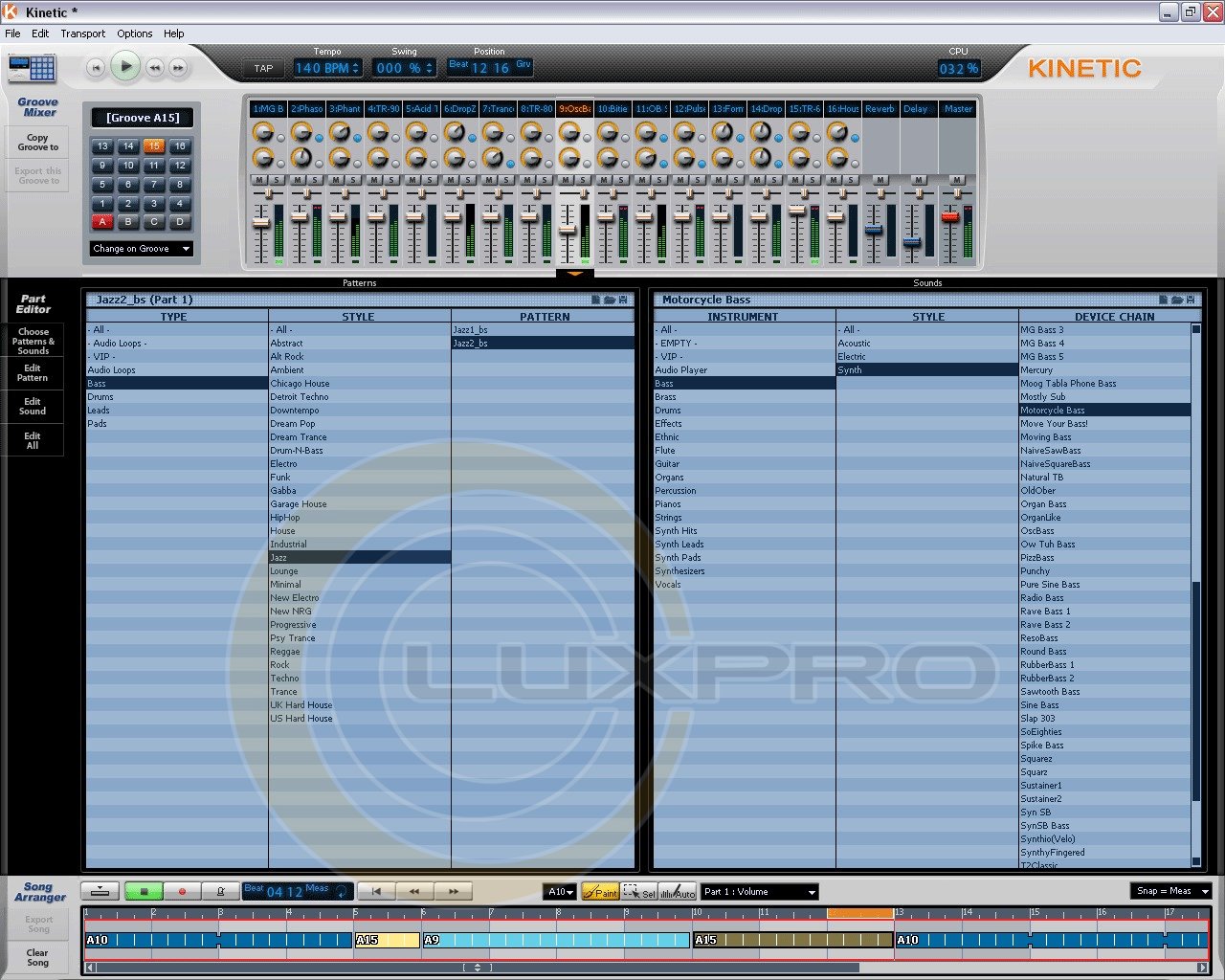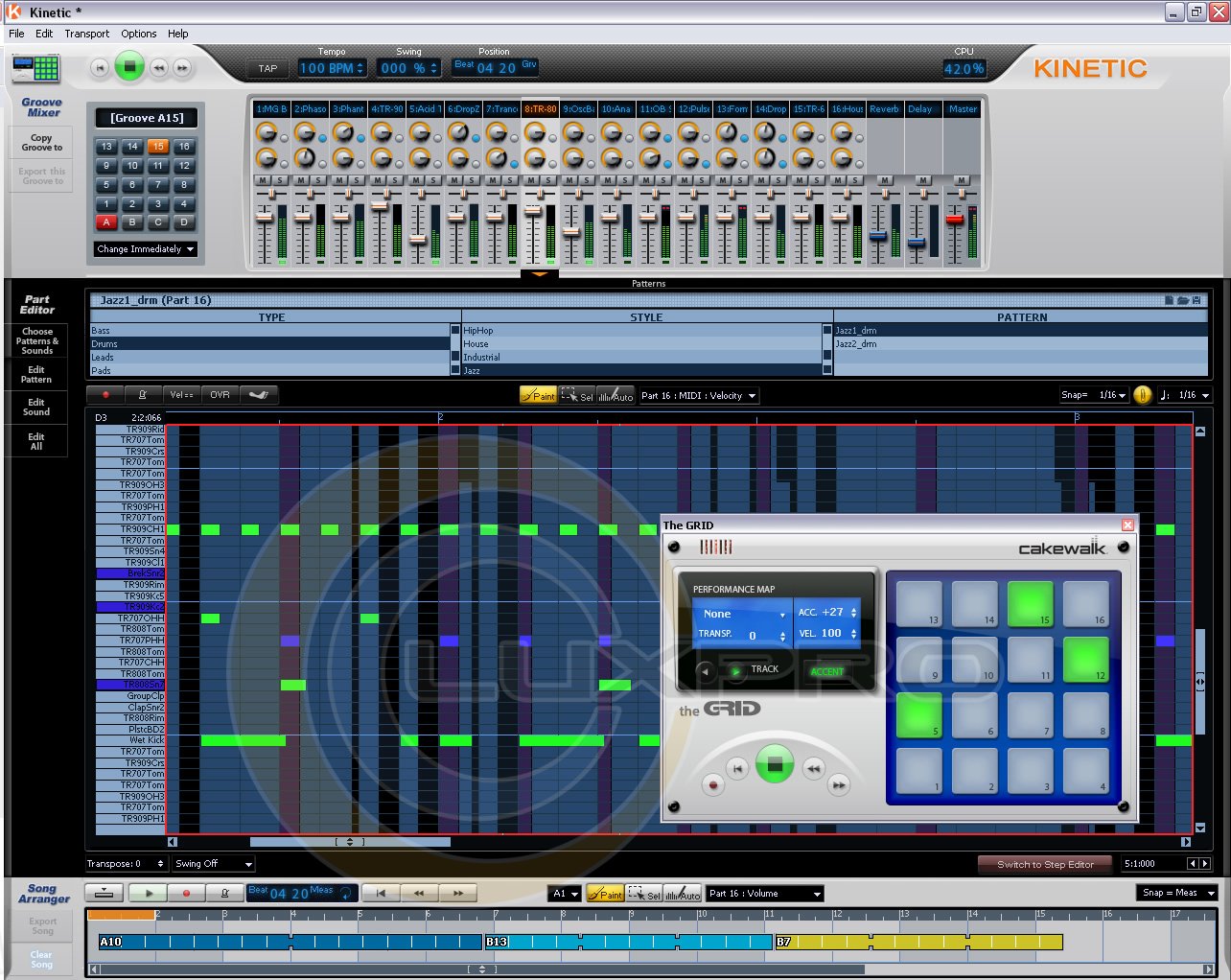 Cakewalk Kinetic 2 ориентирован на пользователей, не имеющих музыкального образования и опыта в области программирования треков на компьютере, и позволяет построить партию от начала до конца, используя сэмплы, которые входят в комплект поставки. Свои собственные ритмы можно сыграть на компьютерной клавиатуре. Играть по виртуальным кнопкам ритм-машины GRID можно и при помощи мыши; а если в вашем распоряжении есть MIDI-контроллер, то задача программирования партии ударных тем более упрощается. С Cakewalk Kinetic 2 вы можете стать танцевальным и хип-хоп продюсером! Kinetic предоставляет самый быстрый и легкий способ создавать электронную музыку. Даже если у вас нет музыкального опыта, очень просто начать создавать собственные композиции. И это еще не все: ритмы будут превосходного качества, т. к. Kinetic обладает лучшим набором инструментальных звуков, доступным для персональных компьютеров. Kinetic предоставляет 100%-ый звук Roland благодаря своим настраиваемым синтезаторам и ритмам. Название Roland ассоциируется с лучшими в мире образцами хип-хопа, танцевальной и электронной музыки. Эти инструменты используются лидерами чартов уже более 20 лет. Оборудование для создания таких звуков стоило бы тысячи долларов, а теперь Вы можете быть сами себе продюсером за собственным персональным компьютером. Kinetic не просто обеспечит хорошее звучание: он поможет раскрыть музыкальный талант любому, несмотря на его опыт и музыкальное образование. Просто выберите инструмент и стиль музыки, и Вам будут доступны тысячи профессионально записанных сэмплов. Чтобы добавить собственную изюминку в музыкальное произведение, Вы можете модифицировать эти сэмплы или создавать свои. Просто выберите нужные инструменты, и Вы уже создаете собственную композицию.Характеристики: