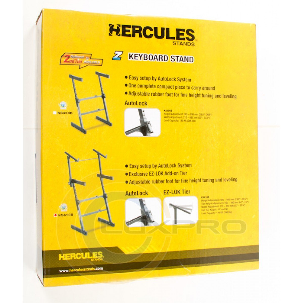 Z-подібна двоярусна стійка для клавішних інструментів з автоматичними фіксаторами висоти установки, нижніми опорами, що складаються, і опорами для інструменту, що налаштовується шириною і змінним кутом нахилу верхнього ярусу.