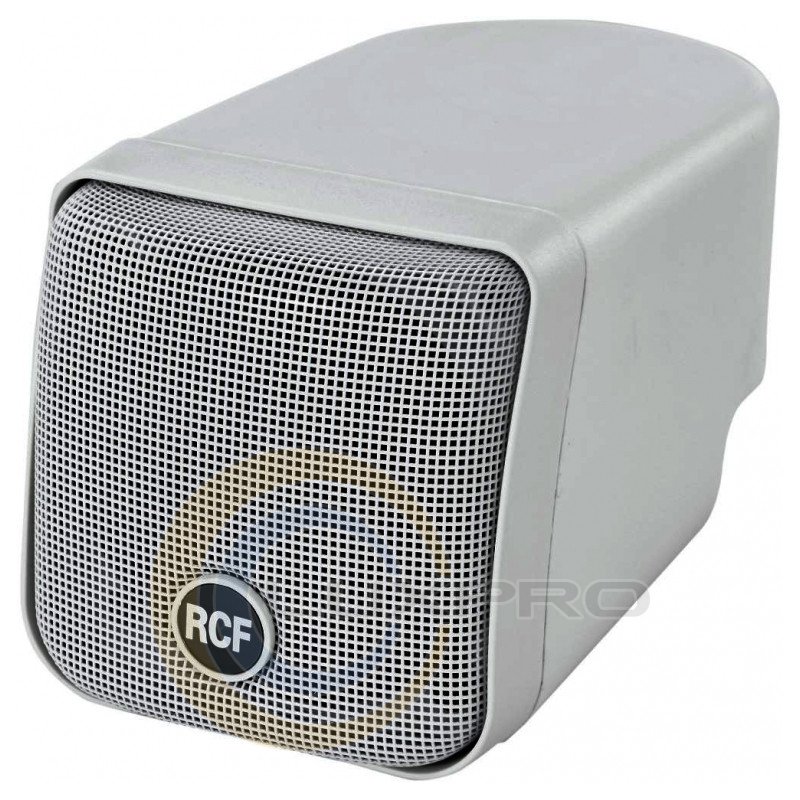 RCF MQ30PB - двосмуговий коаксіальний звуковий прожектор, 12Вт, 100В/16 Ом. Вхід і вихід для послідовного підключення виконані на знімних роз'ємах Euroblock, перемикач безтрансформаторного/трансформаторного режимів, що обертається, і вибору напруги знаходиться під захисними гратами, є засувки для кріплення в підвісну стелю.