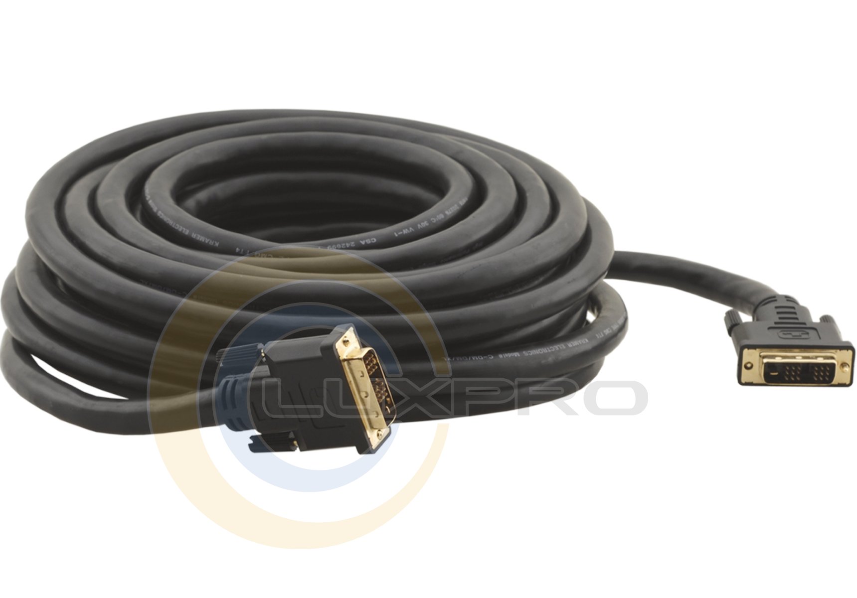 Кабелі Kramer DVI-D dual link призначені для передачі тільки цифрових сигналів (18 + 1 контакт). Інтерфейс DVD-D використовується для прямої стикування джерела сигналу (в основному комп'ютерних відеокарт) і приймача (цифрового монітора або проектора). Природа цифрового сигналу забезпечує отримання зображення більш високої якості, ніж для аналогового сигналу. Будь-яка відеокарта спочатку генерує цифрове відеозображення, яке потім перетворюється в аналогову форму на виході VGA. Такий аналоговий сигнал подається в монітор, де перетворюється знову в цифровий формат. Інтерфейс DVD-D усуває необхідність перетворення в аналогову форму і покращує якість зв'язку джерела і дисплея. Кабелі DVI-D dual link забезпечують додаткову смугу пропускання сигналу для отримання максимальної точності і дозволу. Кабелі з перетином жили 28AWG служать для передачі цифрового сигналу на відстані до 20 метрів.Характеристики:
